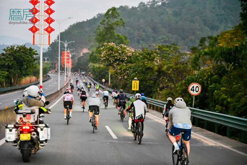 清晨6:30,随着开赛的鸣笛声响起,骑友如离弦之箭奋力向前,跟随着央视1套《山水间的家》撒贝宁的脚步,开启感受“两广骑缘·茶船古道”的山水美景与深厚红色文化交融的骑行之旅。
