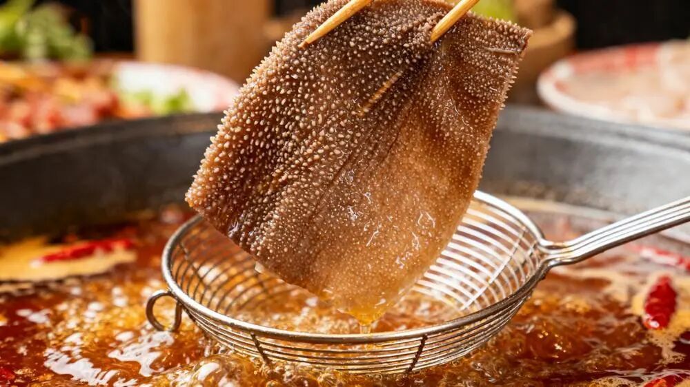 持续涮煮3分钟至5分钟,直到毛肚完全熟透;