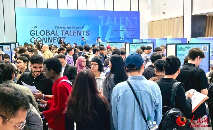 人民网深圳11月22日电 (刘森君)11月22日,深圳“前海5号楼”,国际英才手持简历排起长龙,队伍蜿蜒至过道。当天,粤港澳大湾区(深圳·前海)出海企业与出海人才对接会在这里举行。